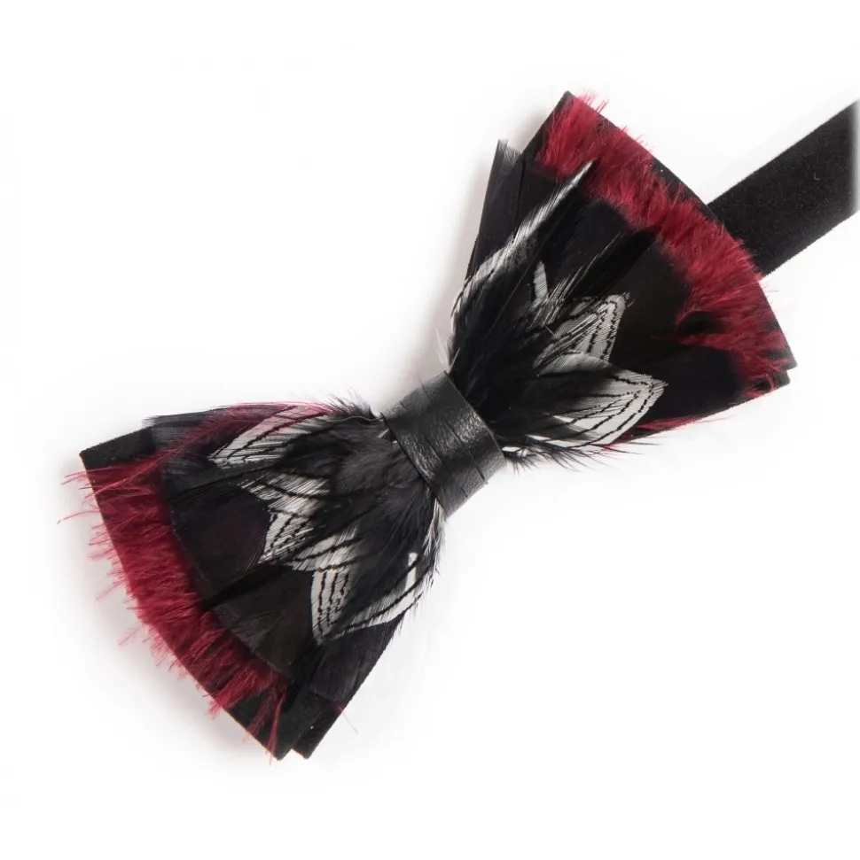 Black Suede Bowtie with Natural Silver Pheasant Plumage Feathers, Turkey Marabou Short Down Fluffy Loose Feathers, Black Turkey Body Plumage Feathers, Black Rooster Neck Hackle Feathers.