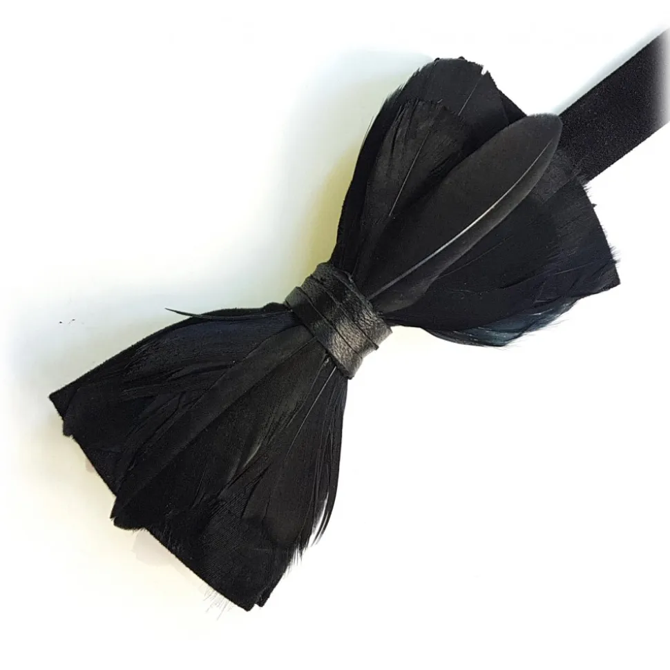 Black Suede Bowtie with Natural Black Goose Nagoire Feathers.