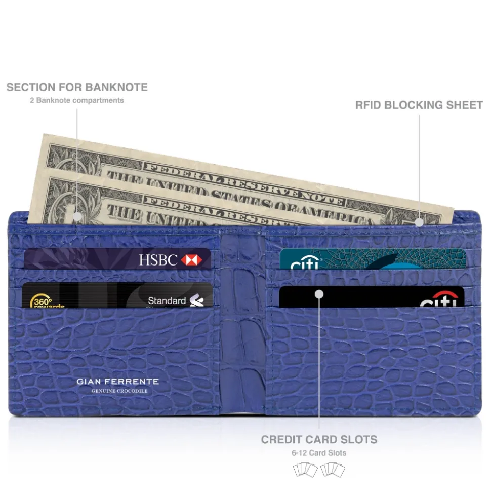Gian Ferrente – Est. 1982 – Classic Bi-Fold Leather Wallet in Caiman Hornback – Blue Navy – Luxury High Quality