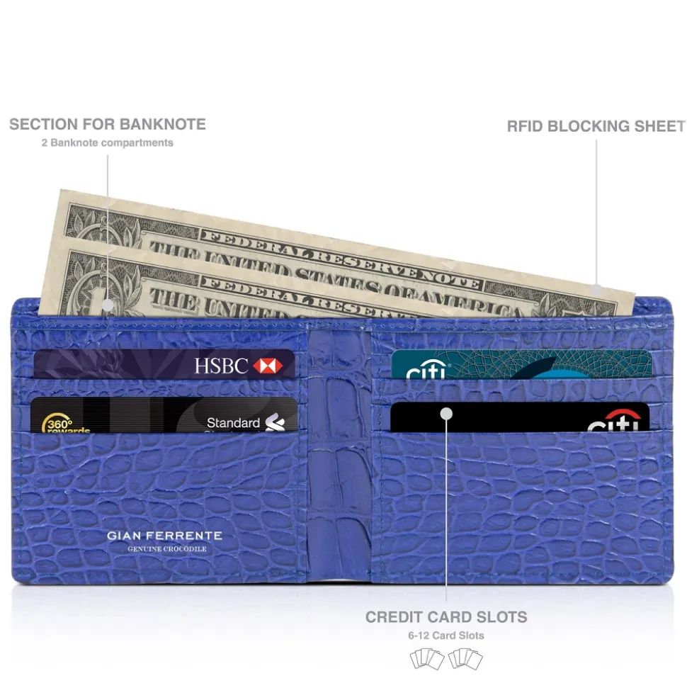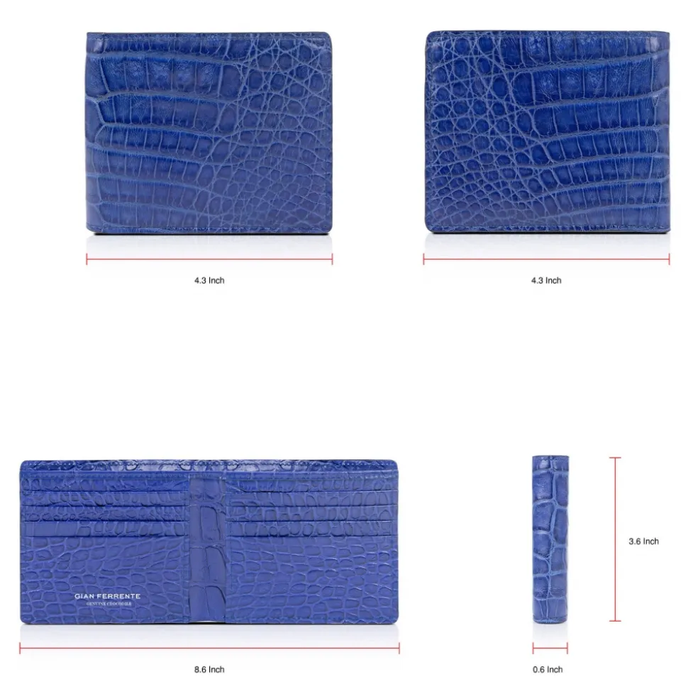 Gian Ferrente – Est. 1982 – Classic Bi-Fold Leather Wallet in Crocodile Belly – Blue Navy – Luxury High Quality