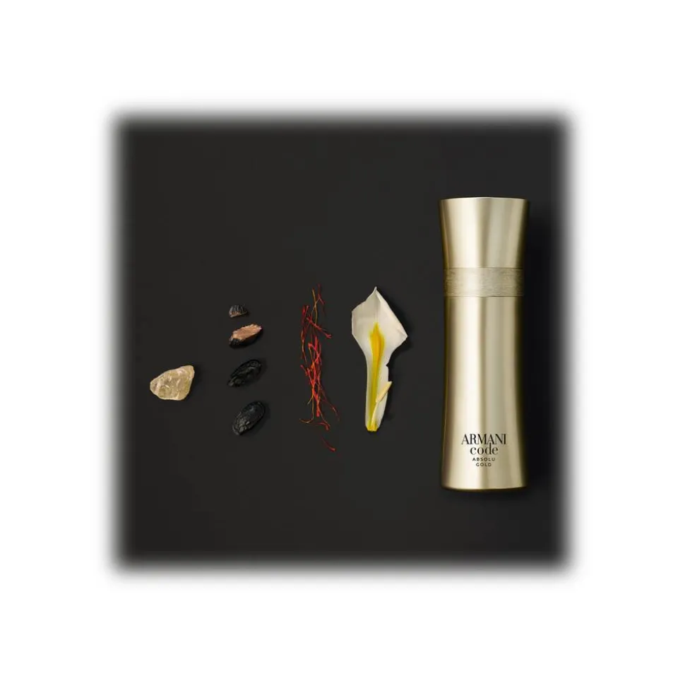 An oriental amber interpretation of Code Absolu. Armani Code Absolu Gold opens with lively notes of mandarin and green apple to immerse us in a sophisticated amber heart. Saffron, leathery and spicy, enhances with its uniqueness the carnal dimension of the perfume for a decisive, structured and rich olfactory experience. The absolute of tonka bean, the emblematic ingredient of Armani Code, meets the accord of cedar woods and the essence of Gaiac which give an unprecedented modern touch, while the benzoin resin reveals all the nobility of the fragrance. Armani Code Absolu Gold is the scent of a modern success story, the result of a perfect balance between fresh notes and more intense and powerful ingredients that contains all the masculine charm. The iconic and elegant bottle is entirely gilded and is embellished with the Giorgio Armani monogram and a motif inspired by the tuxedo band. The bottle is a symbol of timeless elegance, worthy of the most prestigious cinematographic events.