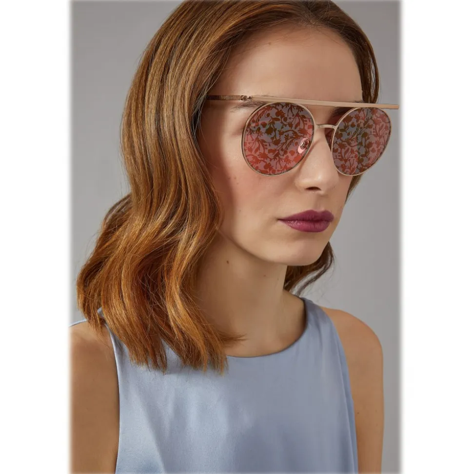 This model of the Catwalk segment embraces the values of the Giorgio Armani woman thanks to the neat and delicate lines. Flat and round in shape, the metal front is accompanied by a straight metal ciliary. With an amazing fancy effect on the lenses, the eyewear reflects the Spring / Summer 2018 collection. Gold Rose.