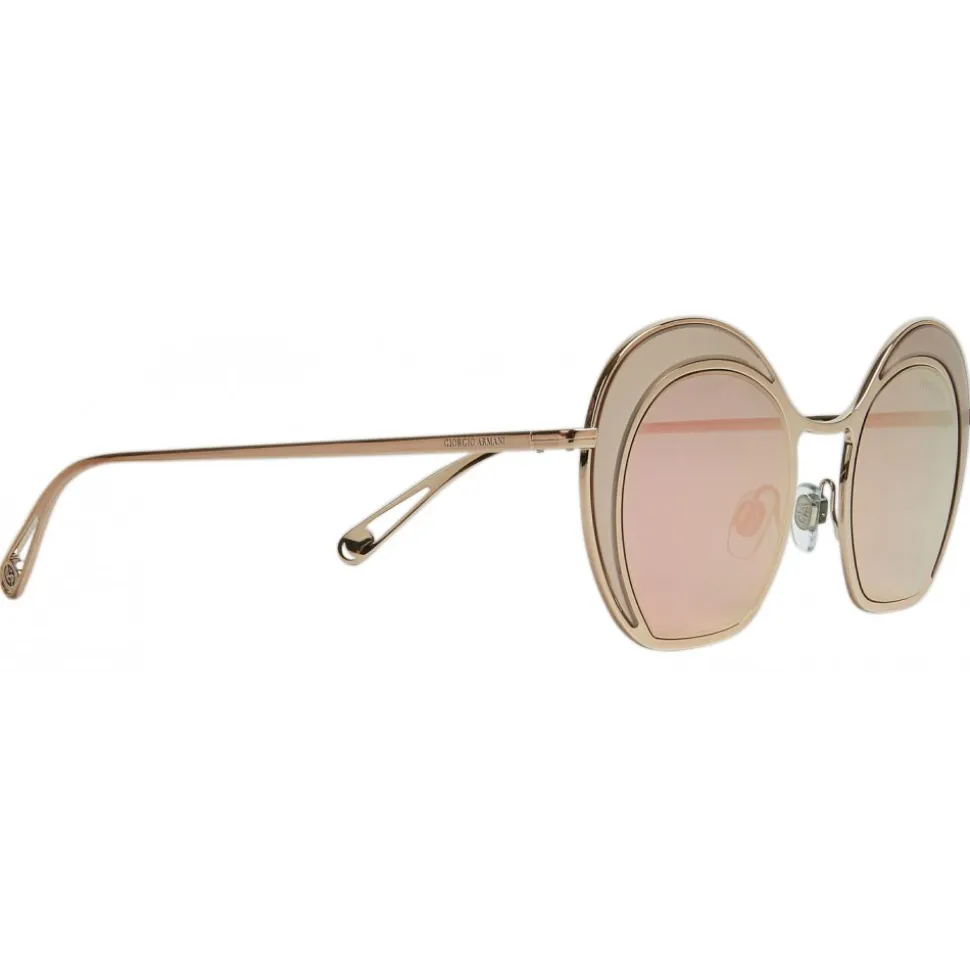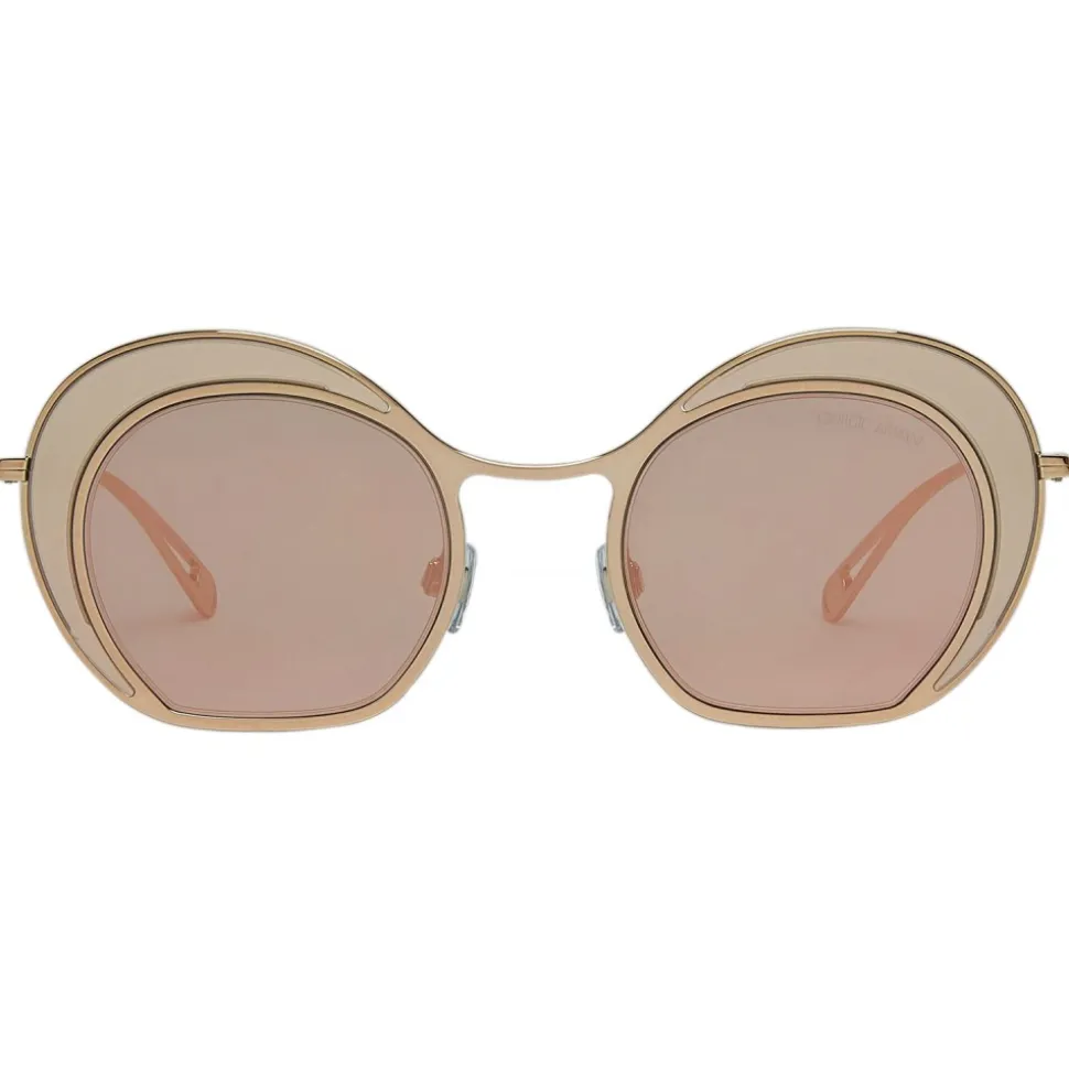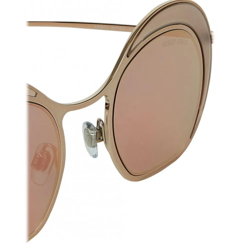 Born from the evolution of the themes of the Fall / Winter 2017 Collection, the irregular round shape of this bold and sensual frame reflects the Giorgio Armani style. The flattened base, the double circle structure and the new thin rods generate an immediate visual impact. The final drop-shaped rod has a hole that frames the GA logo. Model present in the advertising campaign of the season. Grey.