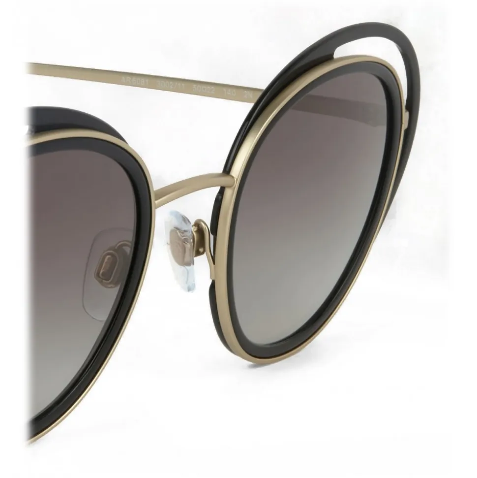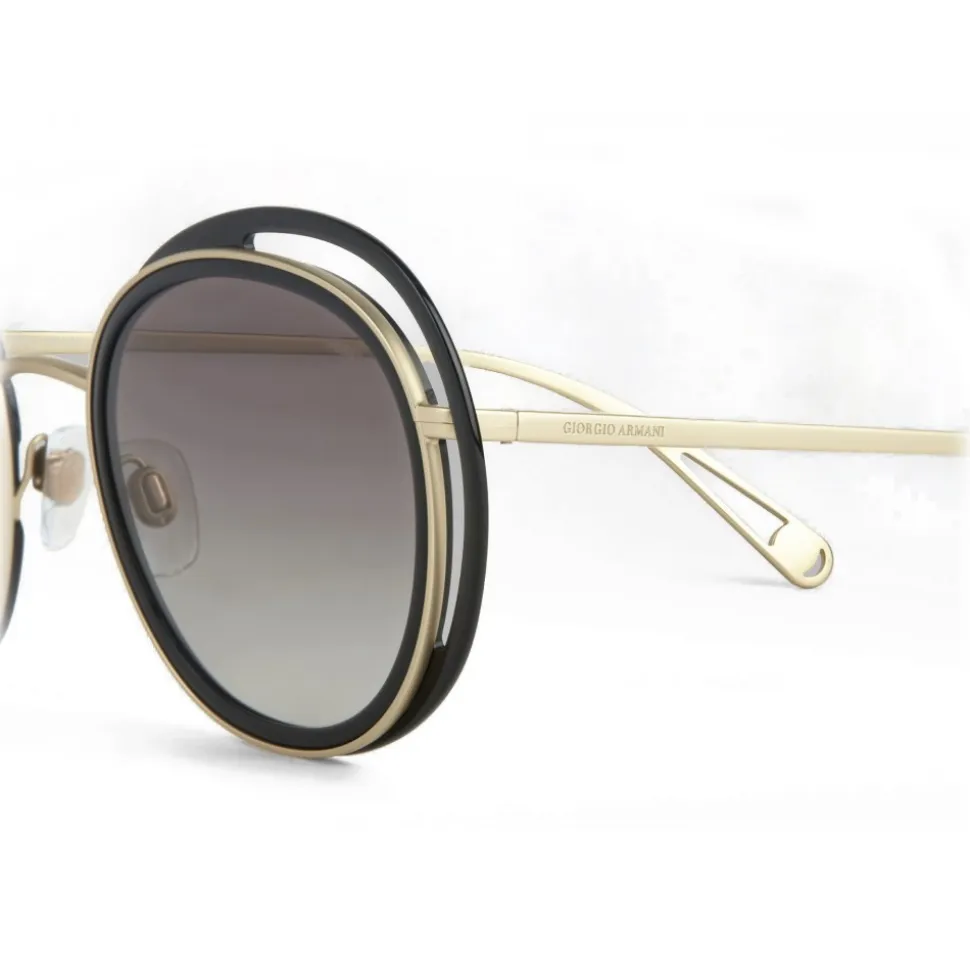 Inspired by the exclusivity of fashion signed by Giorgio Armani, the Open Lenses theme explores light and color through the structure of the frame, rigorously and at the same time expressing the quintessence of the glamor of this brand. This sunglasses model with the innovative “open” round shape has shiny metal profiles with acetate inserts. The new, very thin structure of the temples has perforated drop-shaped terminals, black enameled GA logo, iconic detail that underlines the brand’s identity, and the laser-engraved Giorgio Armani logo at the beginning of the auction, another discreet reference to the brand.