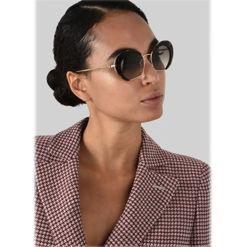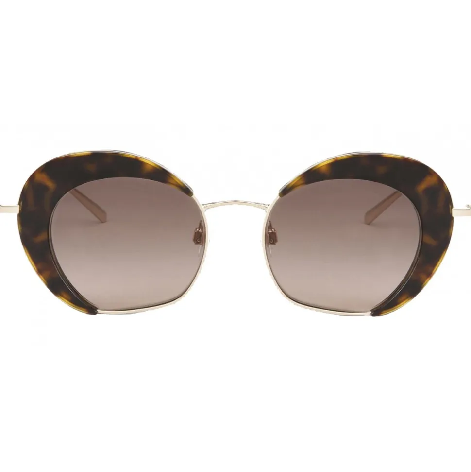 The retro inspiration characterizes these sunglasses. An elegant and refined model that contains blurred lenses in the metal soul. This lightweight-looking accessory stands out for its color details, creating dimension at the end of the lenses. Brown.