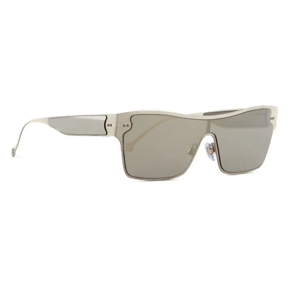 An expression of the avant-garde elegance of Giorgio Armani design, this contemporary sun model reinterprets the refined aesthetics of the brand in a bold and modern key.