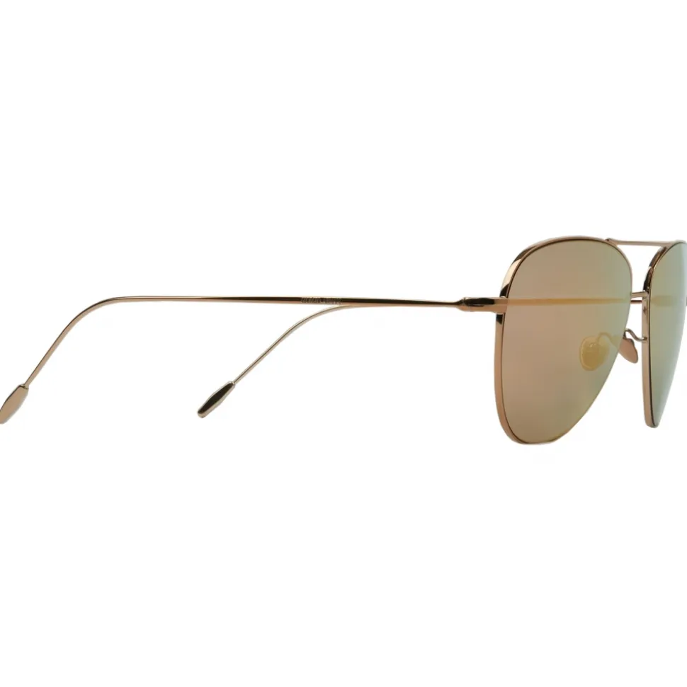 A unique and exclusive version of the AR6049 model plated in 18k gold. The pilot-style model with slender metal temples and diamond-shaped tips is enriched by gold plating. A micron of gold is added through an electroplating process to create an elegant, luxury item with light gold metal frames and brown gradient lenses. The hypo-allergenic titanium nose pads added to the metal frame guarantee the wearer superior comfort.