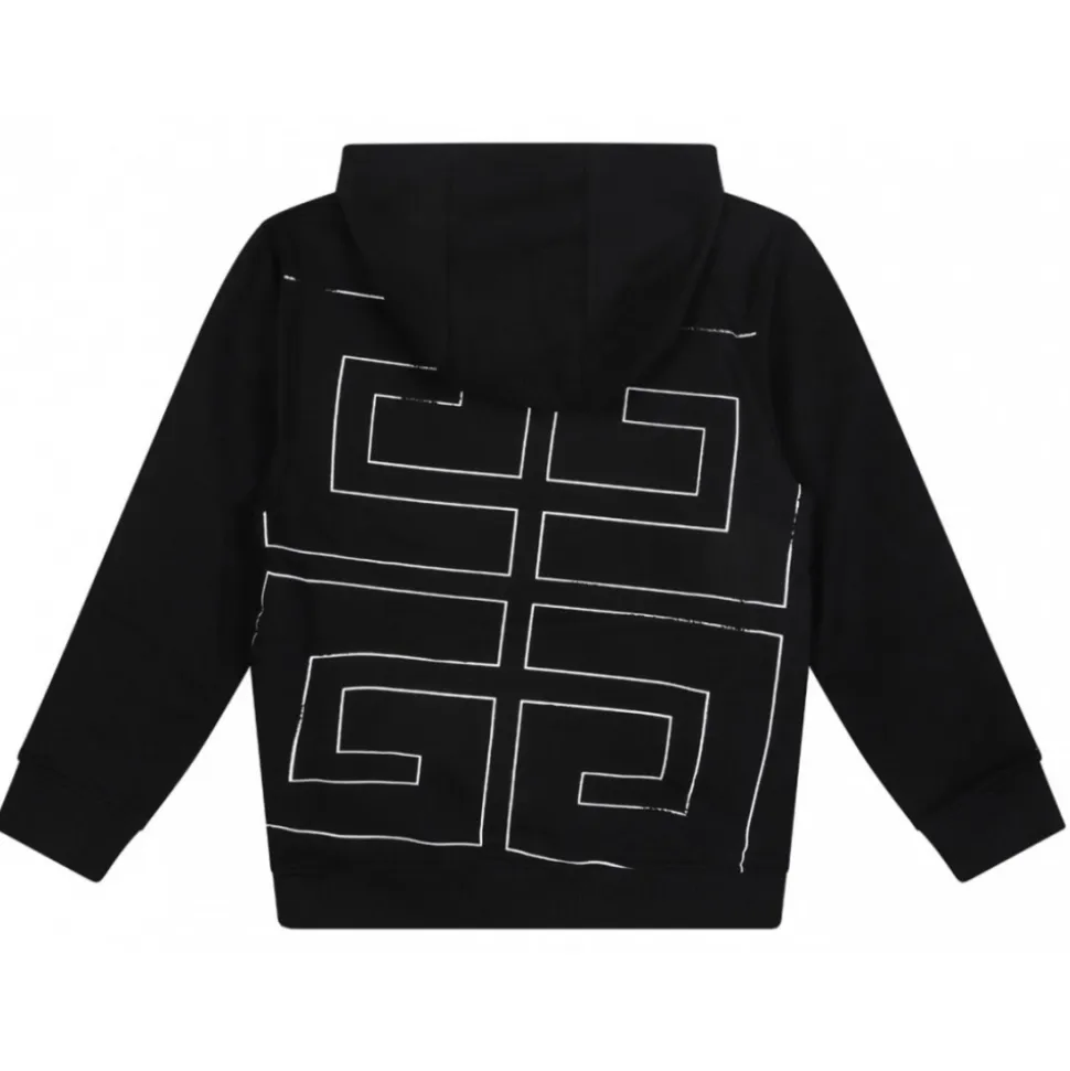 Givenchy Black Hooded Sweatshirt. Black jersey hooded sweatshirt with long sleeves. Ribbed hem and cuffs. Logo print on chest and 4G logo on back. Straight hem.