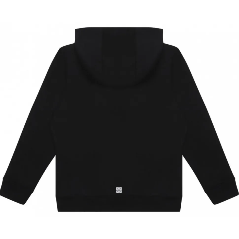 Givenchy Black Lettering Logo Hoodie. Black hoodie made of cotton with fixed hoodie with drawstring, long sleeves and lettering logo print on the front. Pouch pocket on the front and ribbed trim. Regular fit.