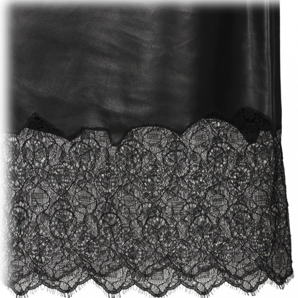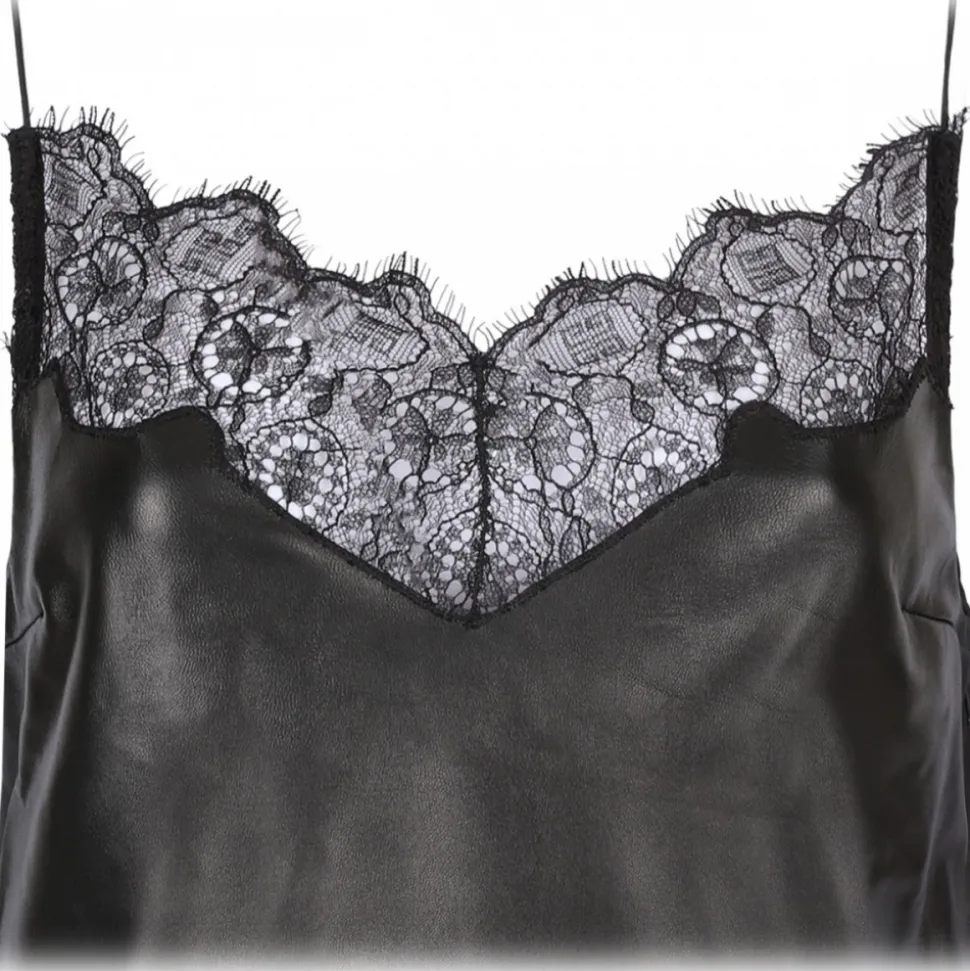 Givenchy Black Midi Dress. Black midi dress with thin straps in soft shiny nappa leather. Lace with 4G details on the upper and the bottom, invisible zipped closure on the side and fluid straight cut.