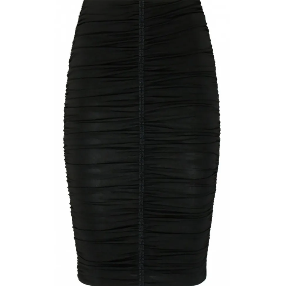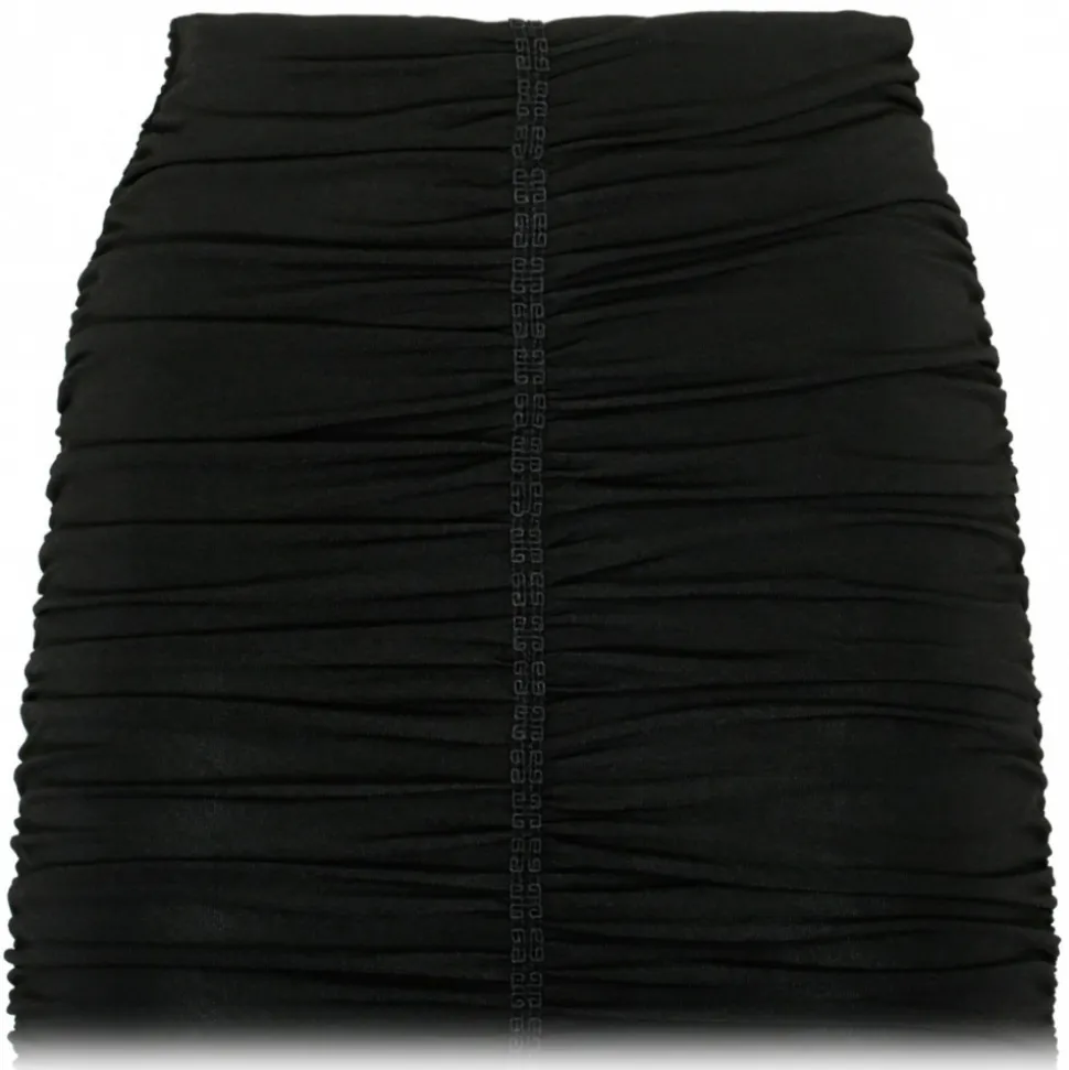 Givenchy Black Ruched Skirt. Black ruched skirt, high waisted, front embroidered 4G chain, back zip closure.