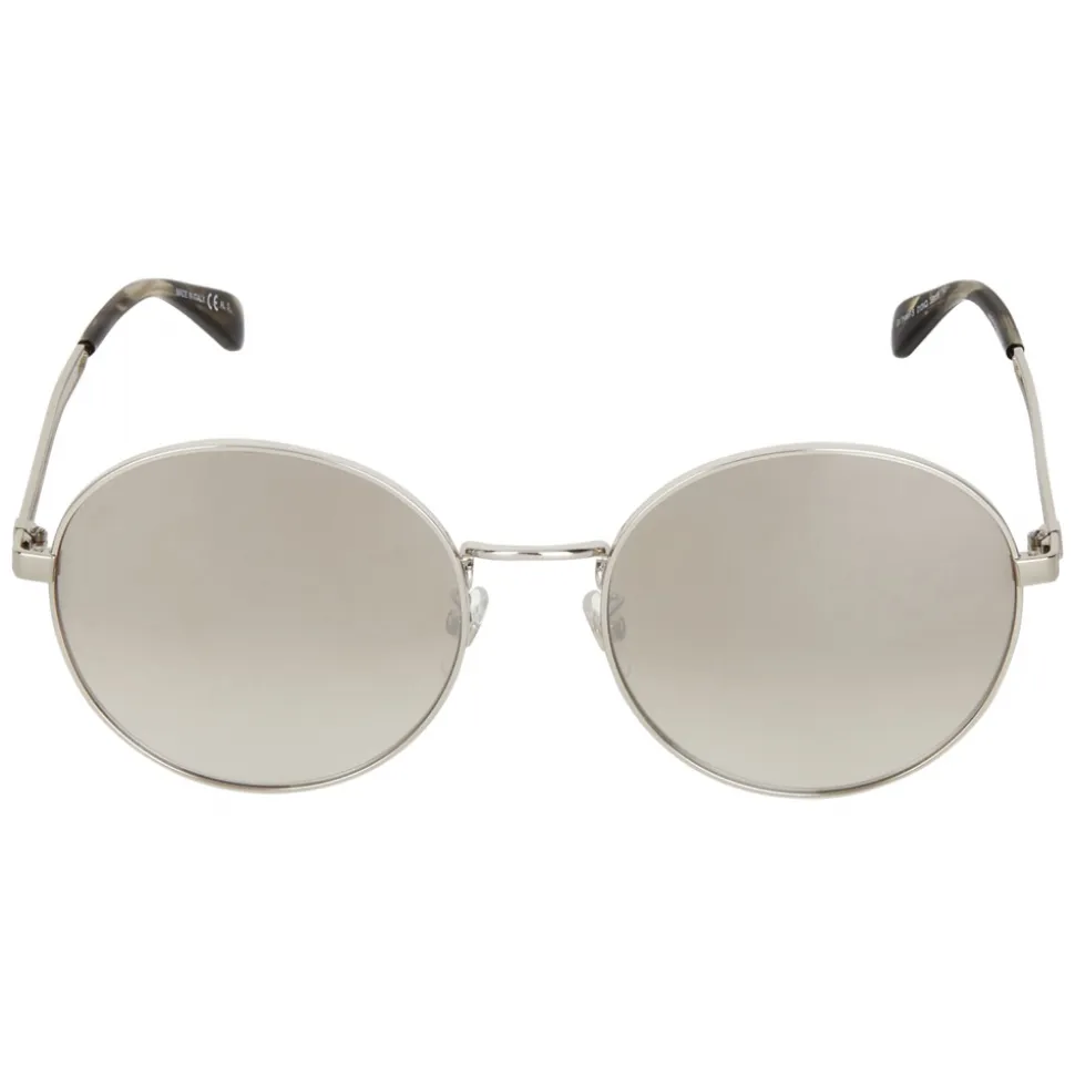 GV Double Wire sunglasses with rounded frame in silver-finish metal and mirrored brown and gray gradient-effect lenses. Double bar temples with laser-engraved 4G emblem and transparent gray acetate tips. UV protection rating: 3. Sunglasses come in a hard case.