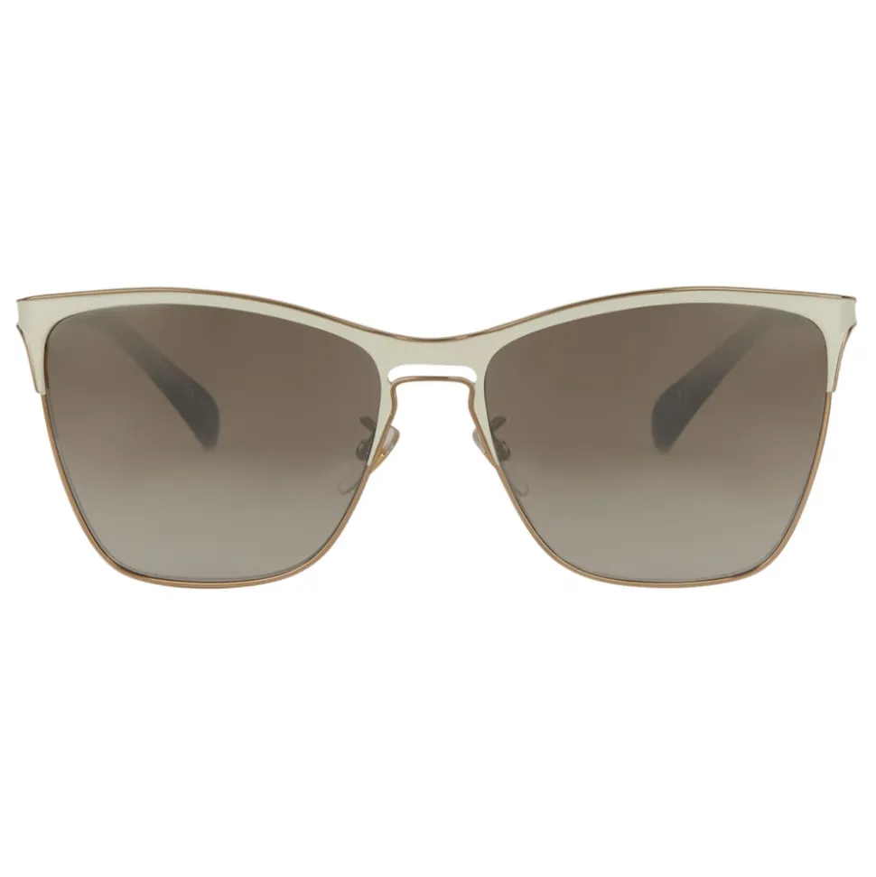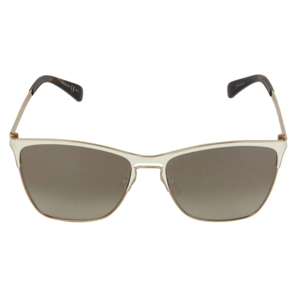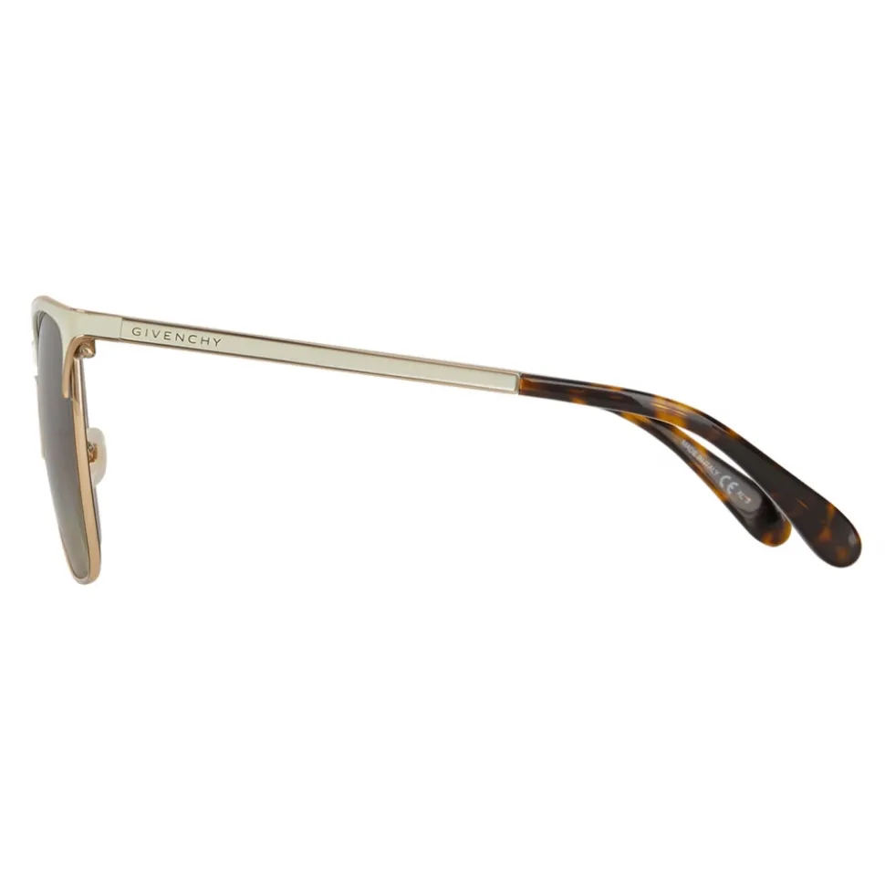 GV Halo sunglasses with square frame, gold-finish metal rims, openwork bridge and matte ivory metal temples trimmed in gold, mirrored brown gradient-effect lenses and tortoiseshell acetate tips. Gold GIVENCHY signature on the temples. UV protection rating: 3. Sunglasses come in a hard case.