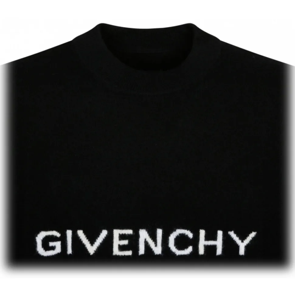Givenchy – Inlay Logo Black Wool Pullover – Givenchy Exclusive Luxury Collection