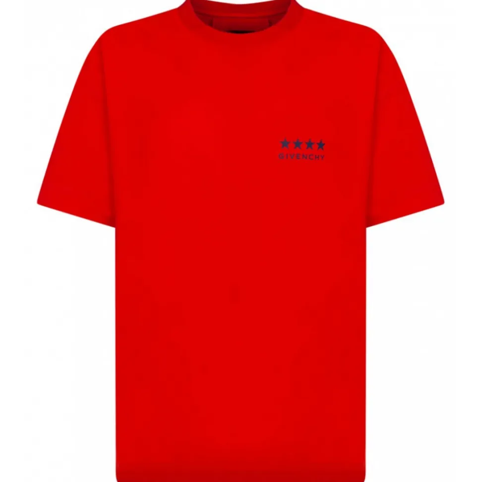 Givenchy Red 4G T-Shirt. Red short sleeved t-shirt in cotton, crew neck, small Givenchy signature with stars printed on the front. Oversized 4G emblem printed on the back.