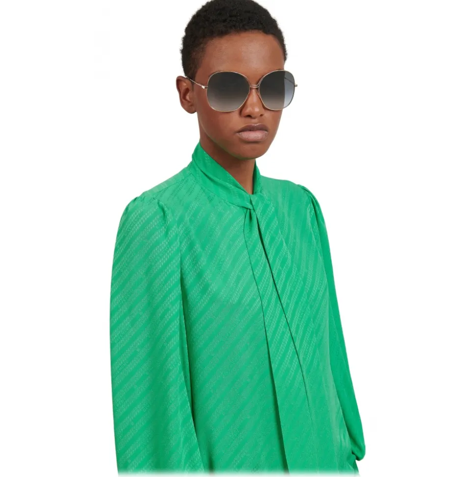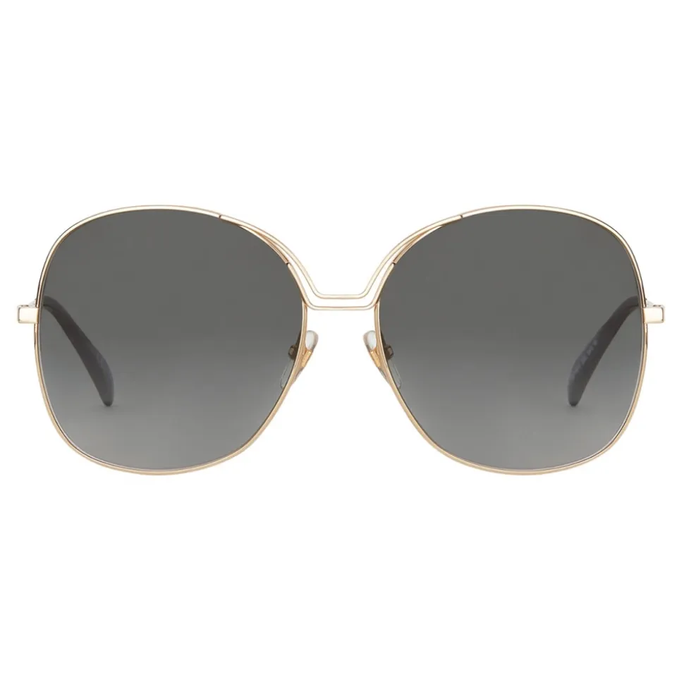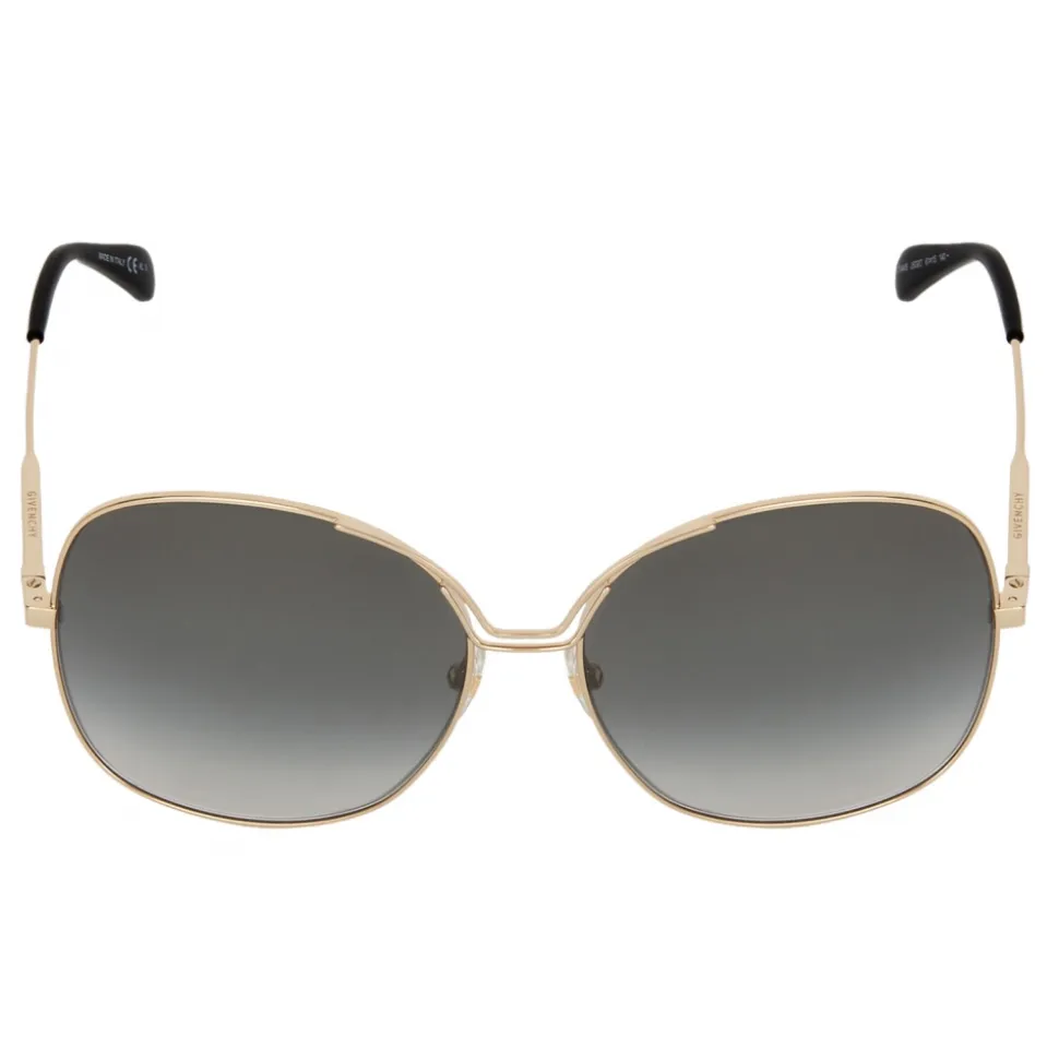 GV Bow sunglasses in gold-finish metal with curved double bridge, gray gradient-effect lenses and black acetate tips. 4G Square emblem engraved on the sides and GIVENCHY signature engraved on the top of the temples. UV protection rating: 3. Sunglasses come in a hard case.