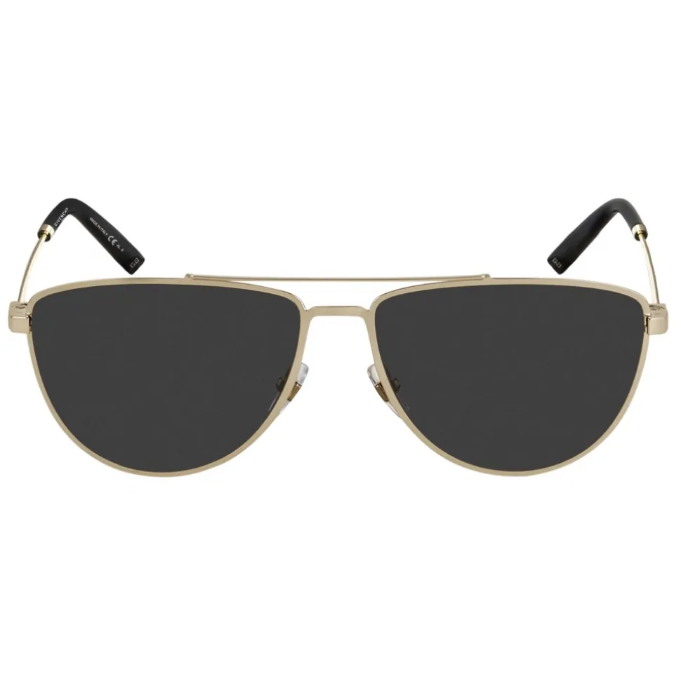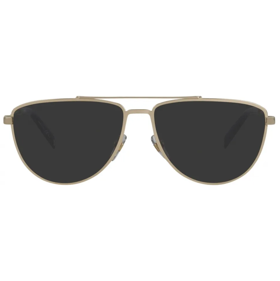GV Cut aviator sunglasses, flat graphic bridge, temples in gold-finish metal, gray lenses, and black acetate tips. Engraved Double G emblems on the tips and hinges. UV protection rating 3. Sunglasses come in a hard case.
