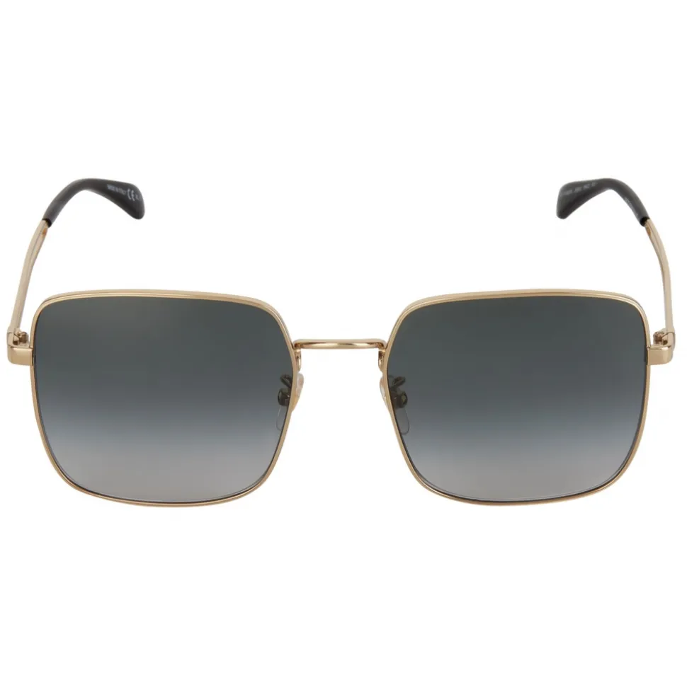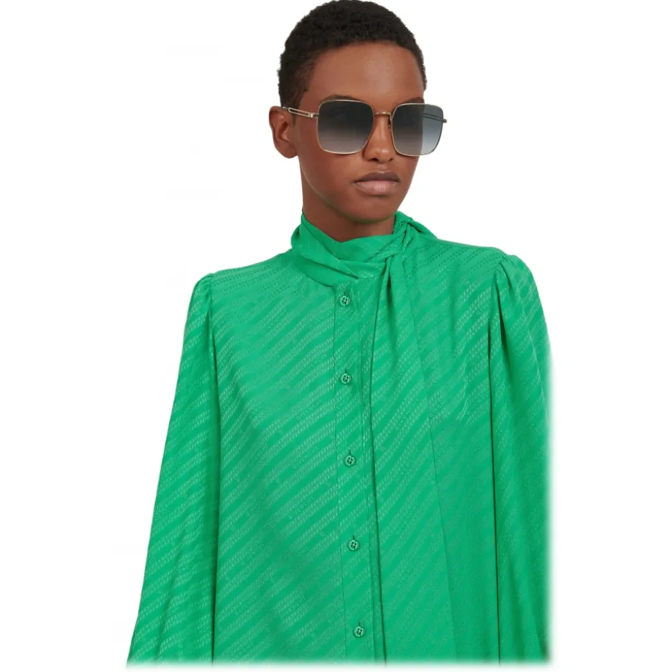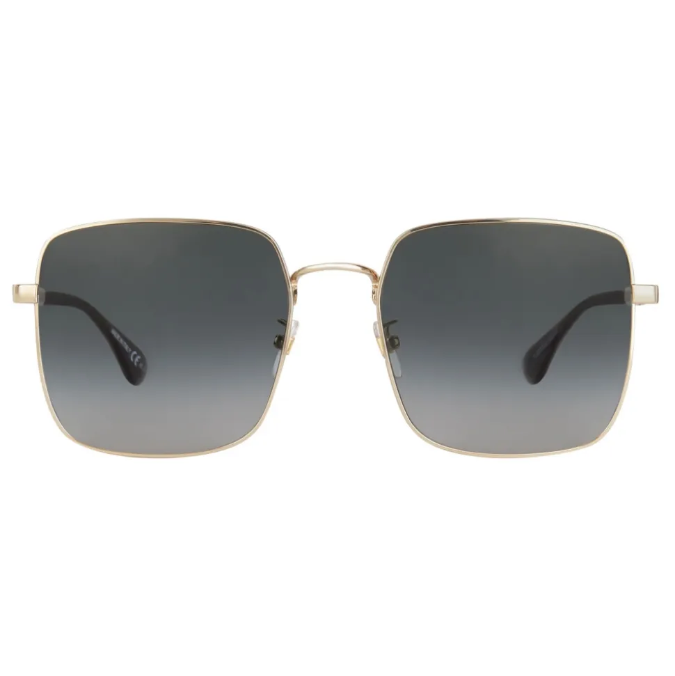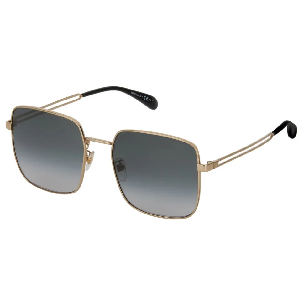 GV Double Wire sunglasses with square frame in gold-finish metal and gray gradient-effect lenses. Double bar arms with laser-engraved 4G emblem and black acetate sleeves. UV protection rating: 3. Sunglasses come in a hard case.