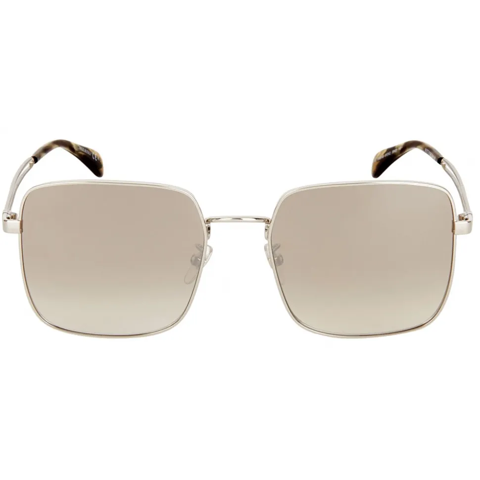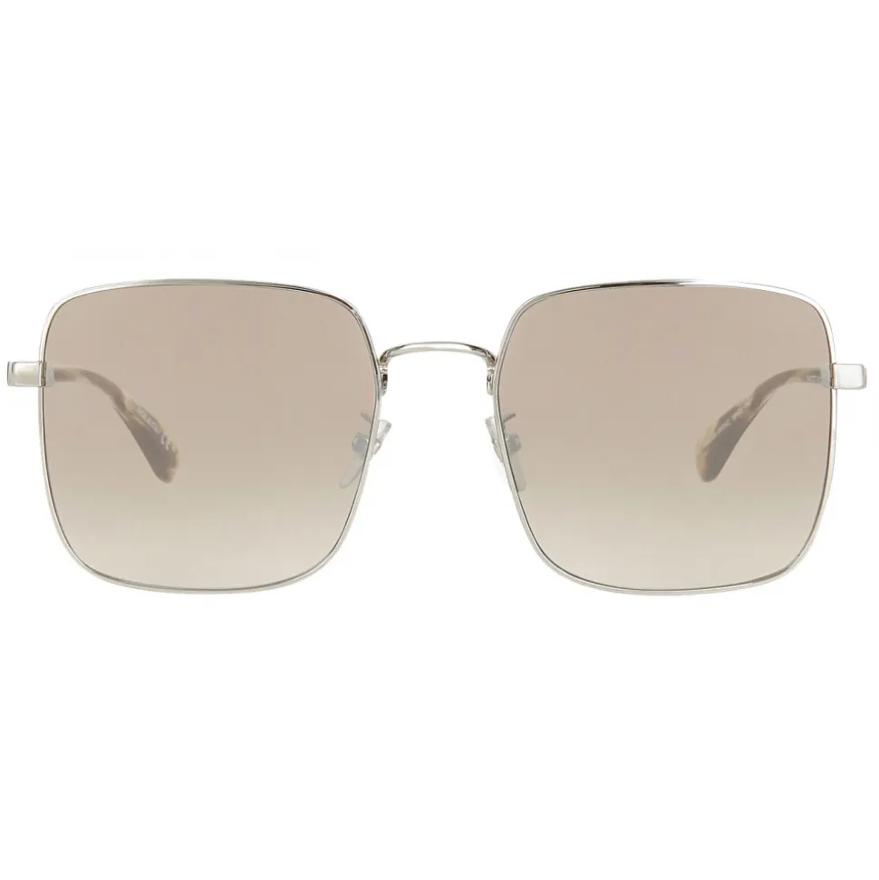 GV Double Wire sunglasses with square frame in silver-finish metal and mirrored brown and gray gradient-effect lenses. Double bar temples with laser-engraved 4G emblem and transparent gray acetate tips. UV protection rating: 3. Sunglasses come in a hard case.