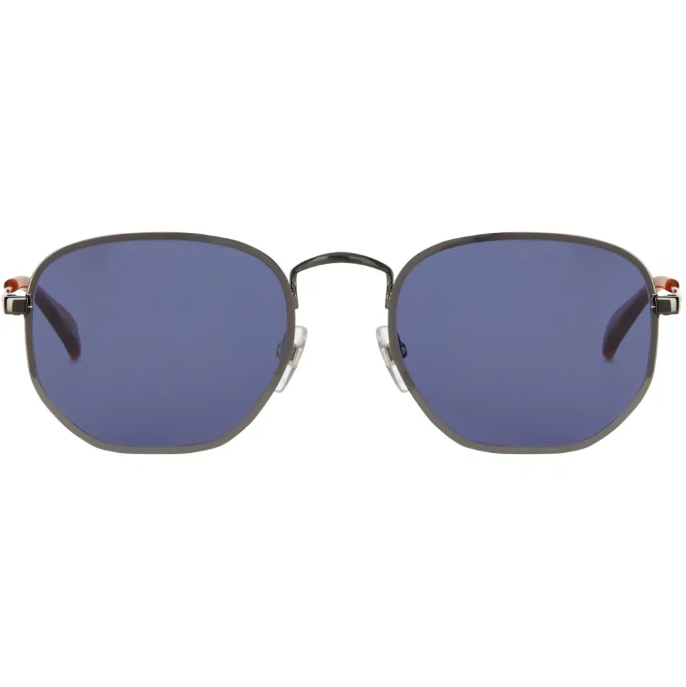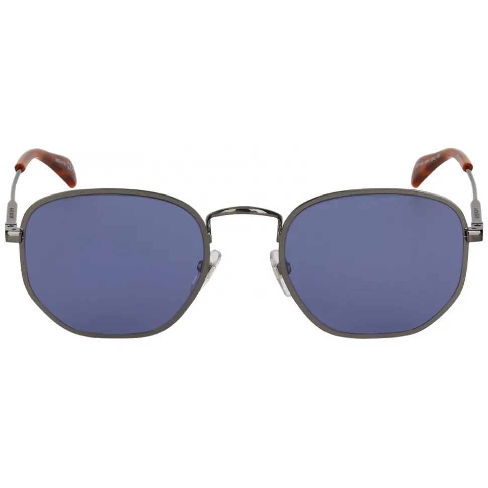Caravane GV Navigator sunglasses in black ruthenium-finish metal with blue lenses and tortoiseshell acetate tips. 4G Square emblem engraved on the sides and GIVENCHY signature engraved on the top of the temples. UV protection rating: 3. Sunglasses come in a hard case.