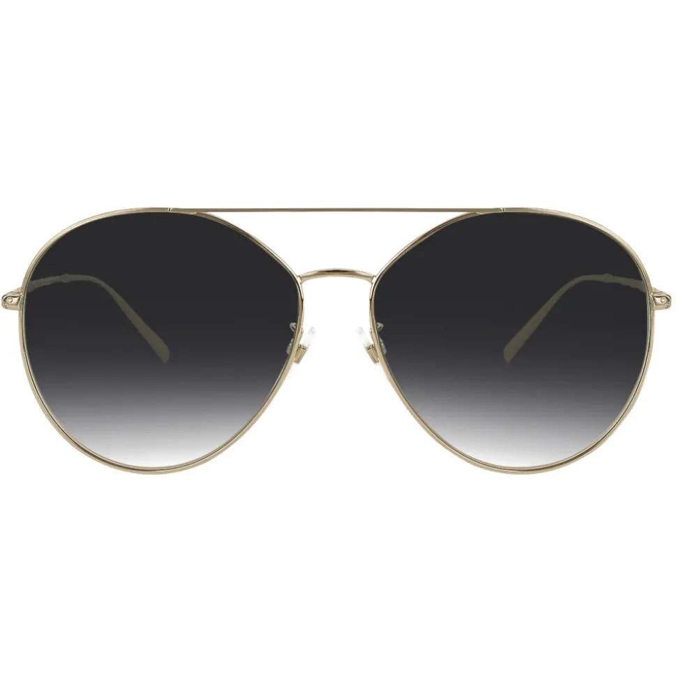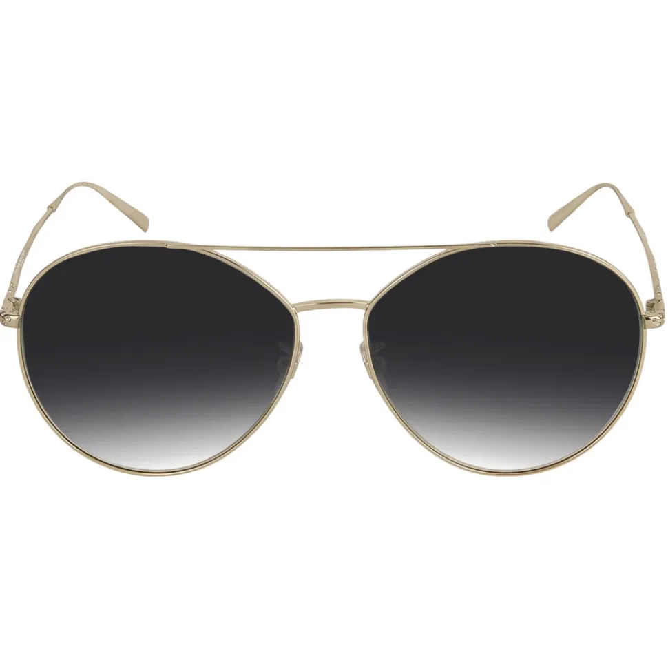 GV Sparkle oversized aviator sunglasses in gold-finish metal with rounded frame, textured temples paved with cascading white Swarovski crystals, and gray ombre lenses. UV protection rating 3. Sunglasses come in a hard case.