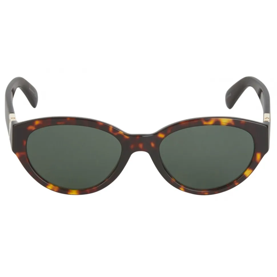 GV3 sunglasses with rounded frame in dark Havana acetate with green lenses and Double G piece in gold-finish metal on the temples. UV protection rating: 3. Sunglasses come in a hard case.