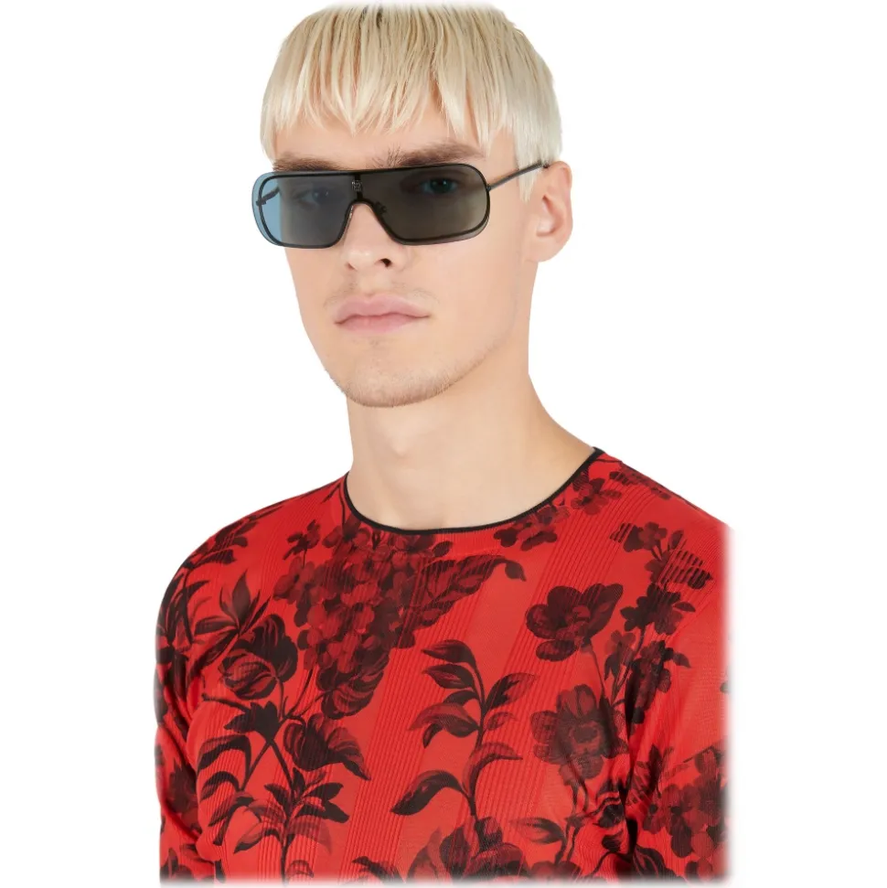 GV Eclipse unisex sunglasses with frame and temples in black metal, blue frames in a single piece with floating effect, black metallic plaque with 4G emblem engraved on the bridge and black acetate tips. UV protection rating 2. Sunglasses come in a hard case.