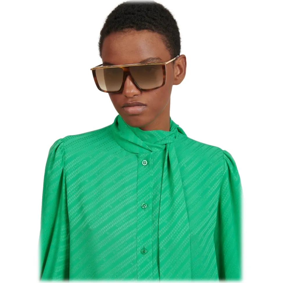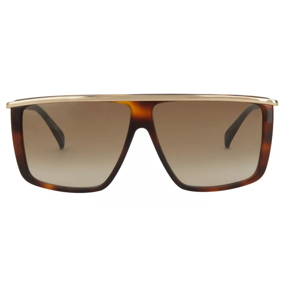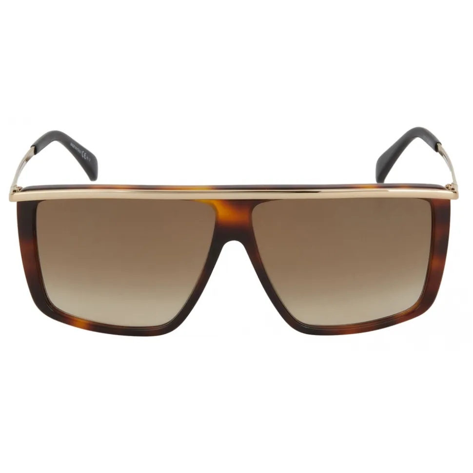 GV Light unisex sunglasses with Havana acetate frame, temples and straight bridge in a single piece of gold-finish metal, brown gradient-effect lenses and black acetate tips. GIVENCHY signature engraved on the temples. UV protection rating: 2. Sunglasses come in a hard case.