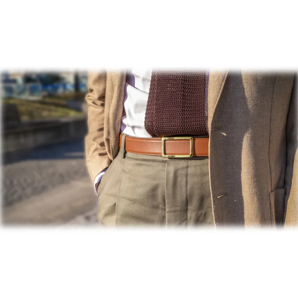 Goldfels – Gold I – Calfskin Cognac Brown – Brown – Belt – Made in Italy – Luxury Exclusive Collection
