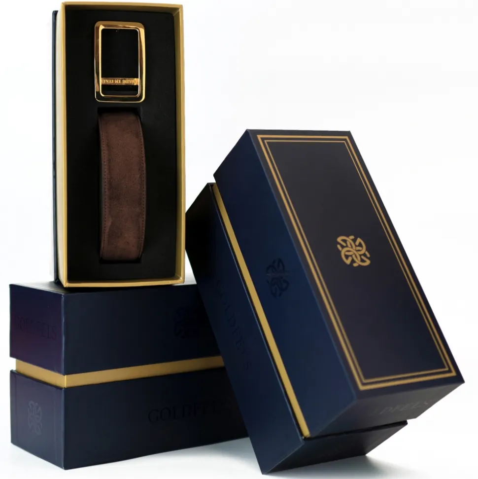 Goldfels – Gold I – Suede Havana Brown – Brown – Belt – Made in Italy – Luxury Exclusive Collection