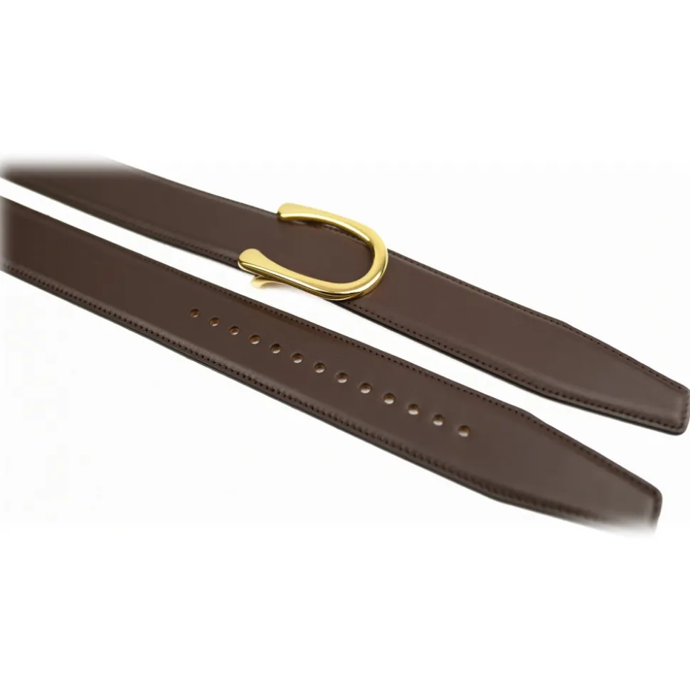 Goldfels – Gold II – Calfskin Chocolate Brown – Brown – Belt – Made in Italy – Luxury Exclusive Collection