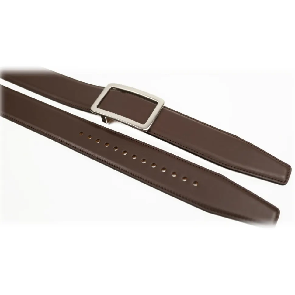 Goldfels – Palladium I – Calfskin Chocolate Brown – Brown – Belt – Made in Italy – Luxury Exclusive Collection