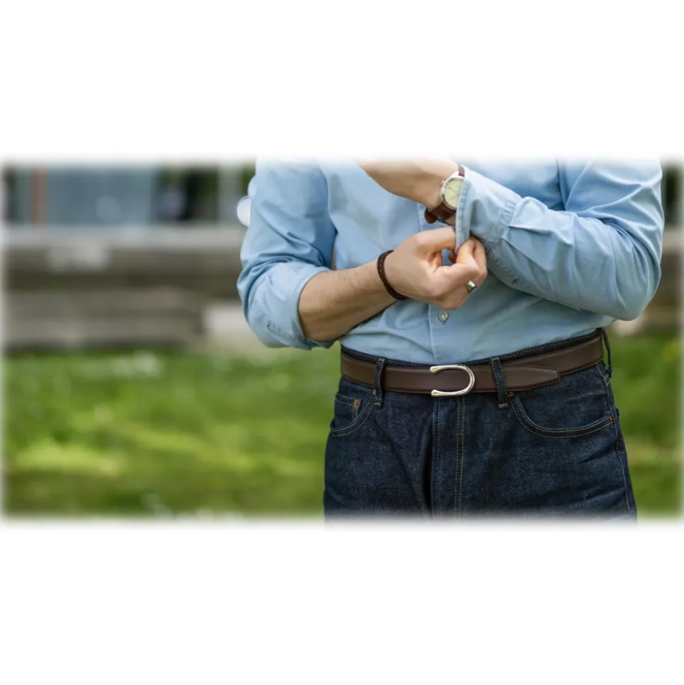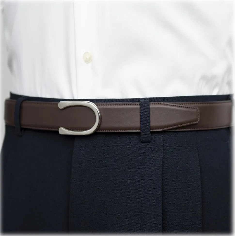 Goldfels – Palladium II – Calfskin Chocolate Brown – Brown – Belt – Made in Italy – Luxury Exclusive Collection