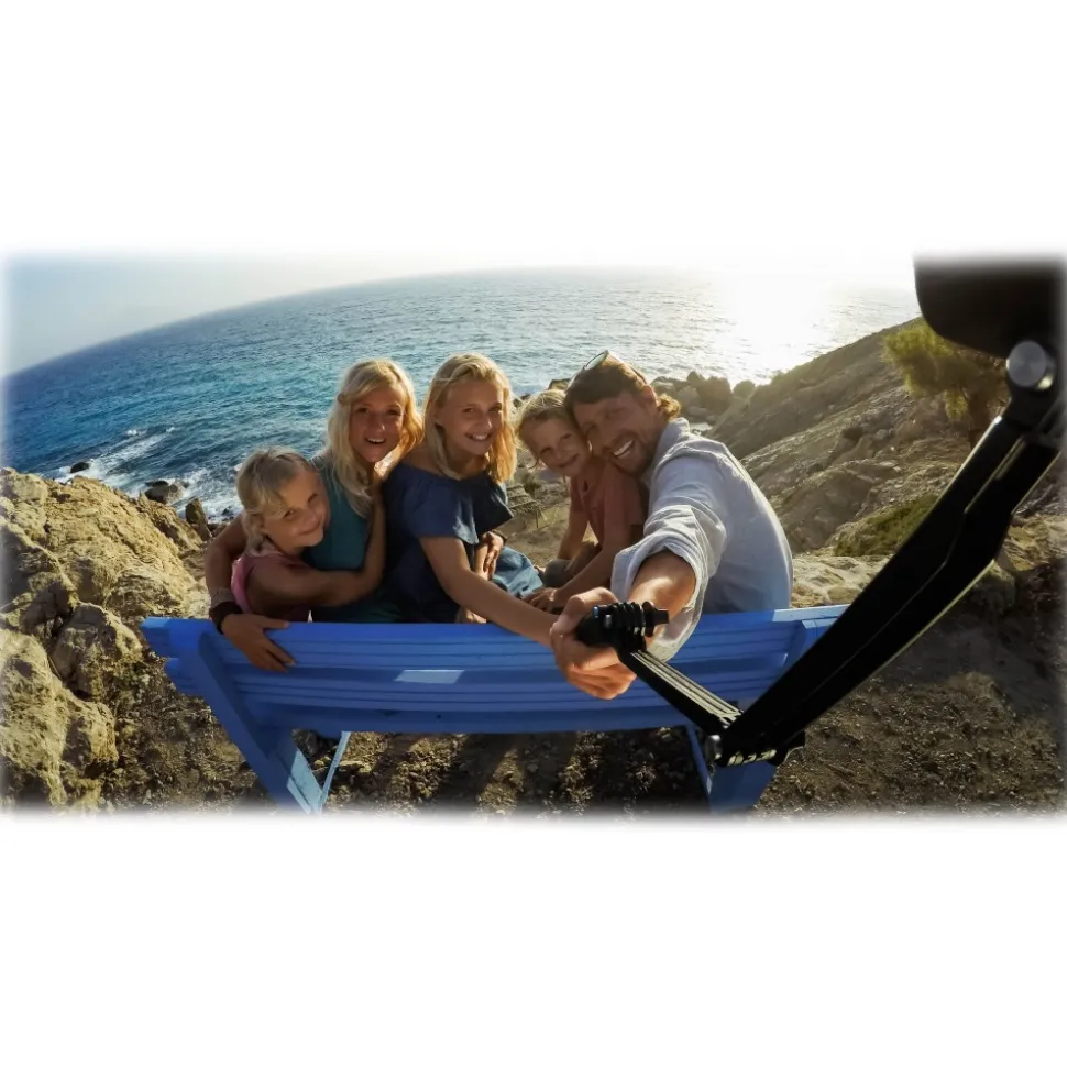 This ultra versatile mount can be used three main ways: as a camera grip, extension arm or tripod. The folding arm is perfect for POV or follow-cam footage, and makes it easy to capture selfies without the mount appearing in the shot. When detached from the arm, the handle doubles as a camera grip. Stored inside the handle is a lightweight, mini tripod that can be removed and used on its own or combined with the handle. Expands to 20in (50.8cm), collapses to 7.5in (19cm).