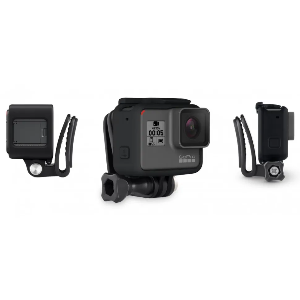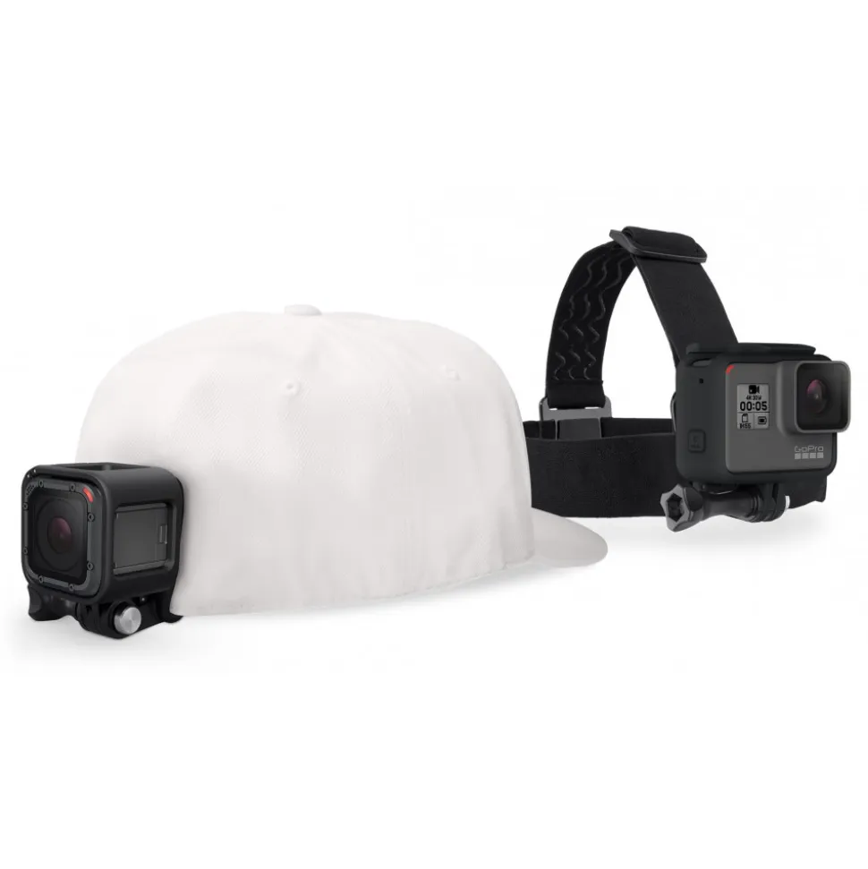 Includes a Head Strap and a QuickClip for a variety of head-mounting options. Fully adjustable to fit all sizes, the Head Strap can be strapped to a helmet or directly on your head. The QuickClip can be used to attach your GoPro to baseball caps, belts and more.