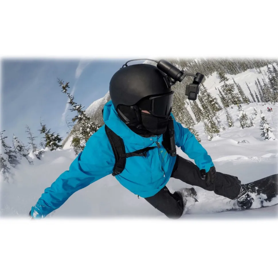 Make uniform shots with the camera attached to the body. The Karma Grip can be used with GoPro body mounts, including the integrated shoulder strap in the Karma housing.