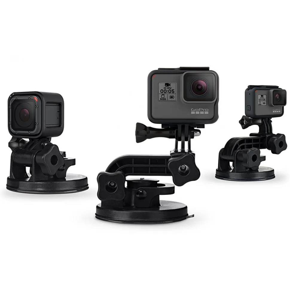 Attach your GoPro to cars, boats, motorcycles and more. This industrial-strength Suction Cup mount is proven at speeds of 150+ mph and engineered for stability and a broad range of motion. Adjustable arms allow for ultra compact mounting. Includes a standard base and a quick release base for moving conveniently between shots and locations. For maximum holding strength, attach to a clean surface.
