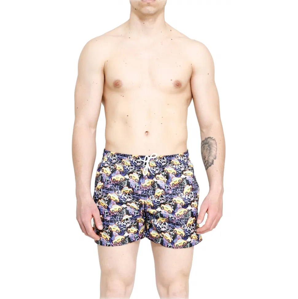 Mid-thigh boxer shorts with drawstring waist and internal mesh.