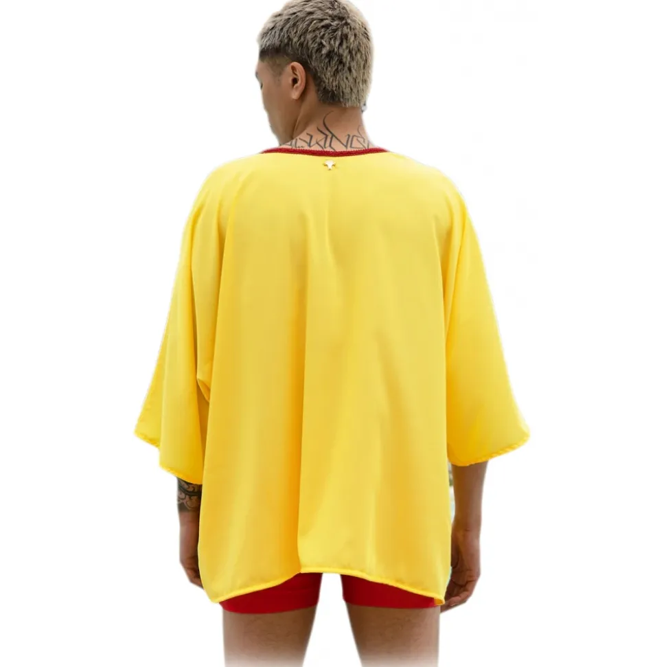 Men’s kimono long above the bottom with elbow-length sleeves embellished with contrasting trimmings.