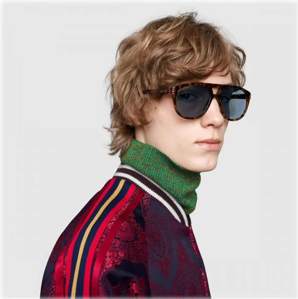 Among the historical codes of the Maison borrowed from the world of equitation, the Web changes its face every season. In these aviator sunglasses, the striped pattern turns into an enamel detail that decorates the end of the frame. In tortoiseshell acetate, this model is completed by a slot in the terminals.