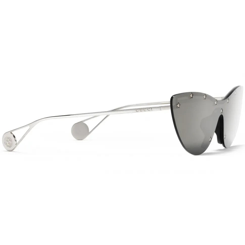 Part of the Cruise collection, these sunglasses are defined by a cat-eye shape. Backed by a hidden metal frame and embellished with star shaped rivets, the grey and white mirror lens creates a game of reflections. A forked design defines the temples, finished with the Interlocking G detail.