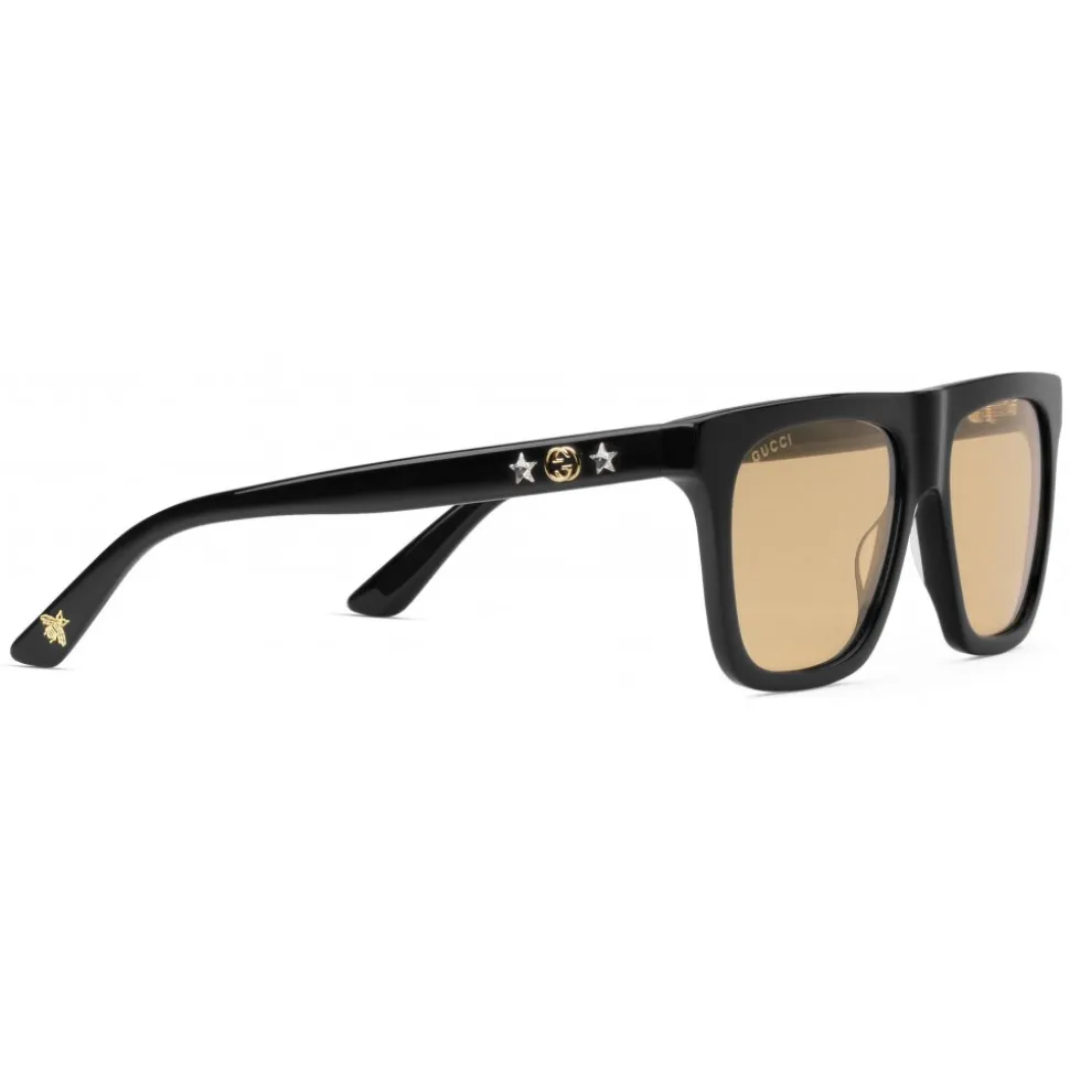 Black acetate temples with interlocking G flanked by crystal stars