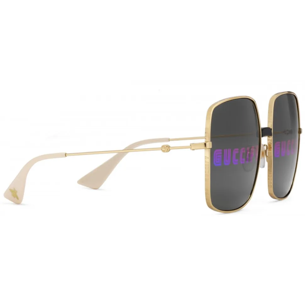 Polished gold metal temples with mini GG detail and white terminals with gold bee detail