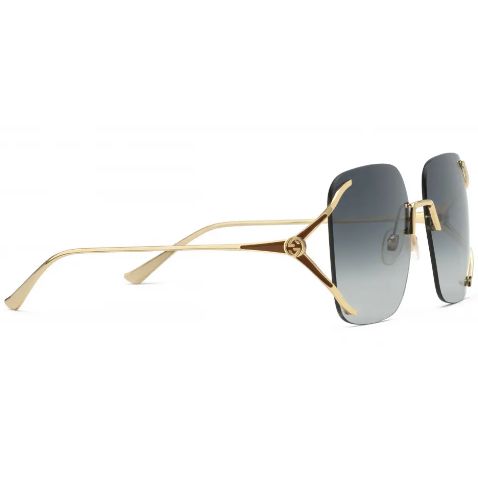 Gold metal temples with Interlocking G and brown enamel details