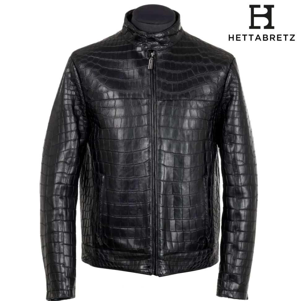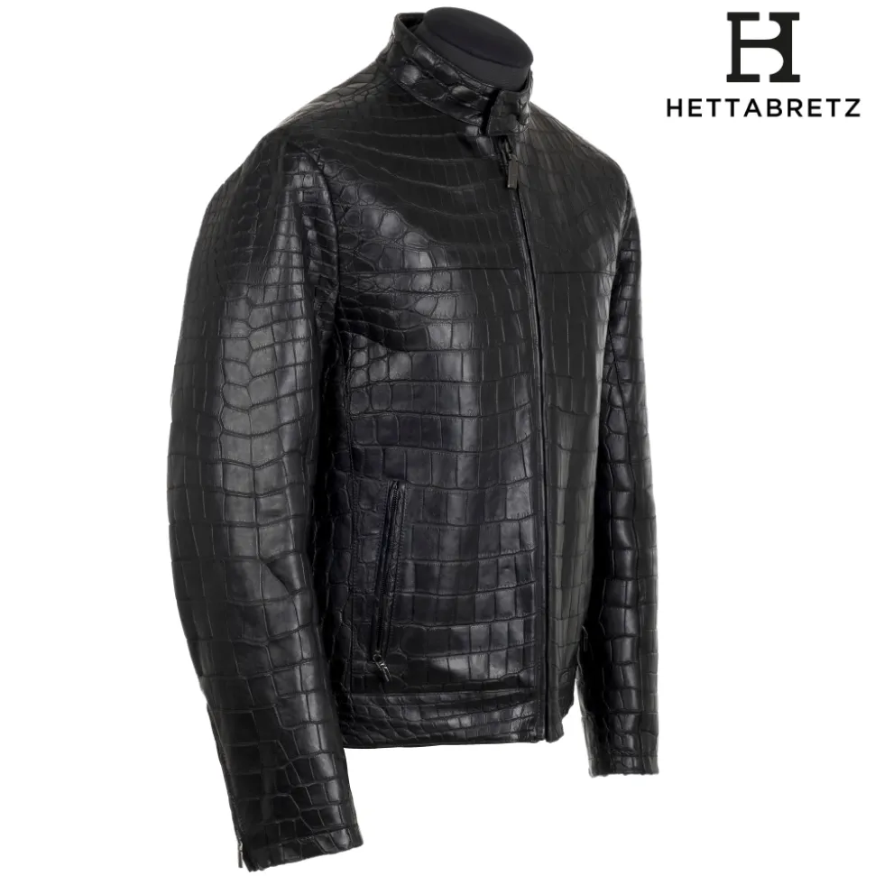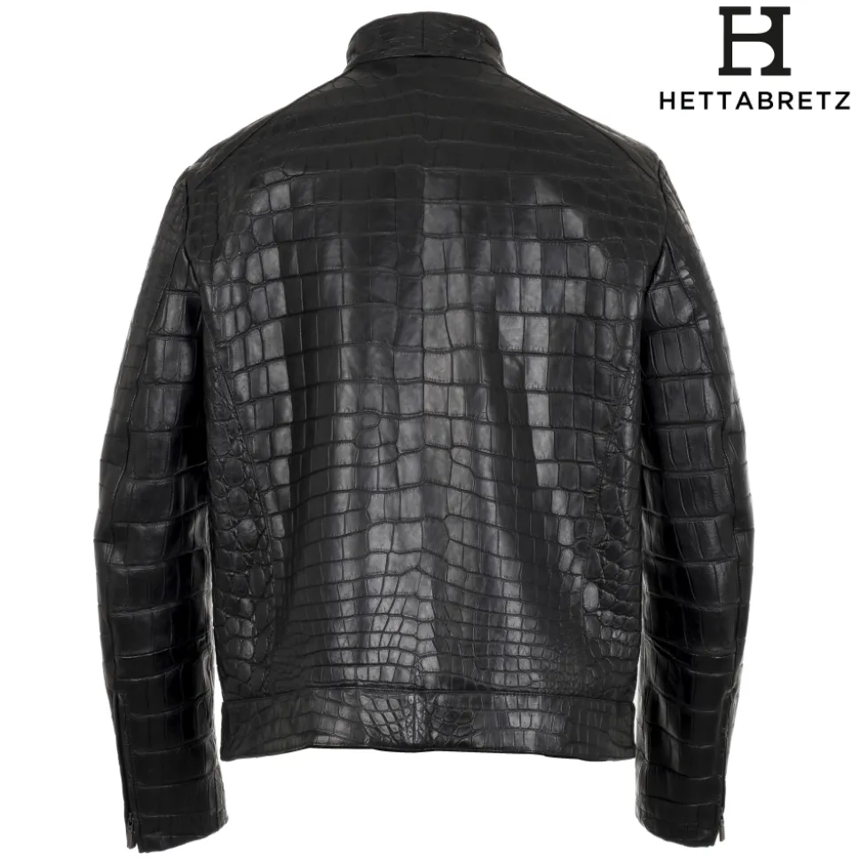 Hettabretz – Crocodile Niloticus Biker Jacket with Silk Lining – Black – Italian Handmade Jacket – Luxury High Quality Leather
