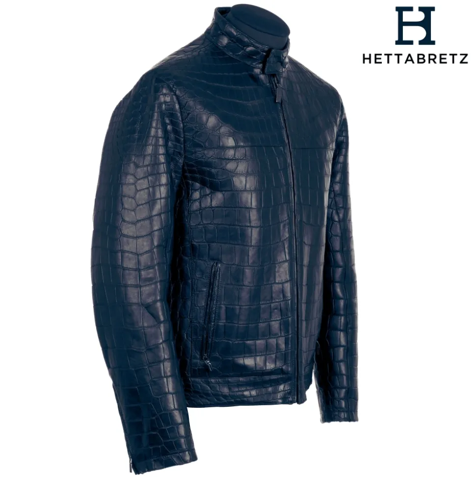 Hettabretz – Crocodile Niloticus Biker Jacket with Silk Lining – Blue – Italian Handmade Jacket – Luxury High Quality Leather