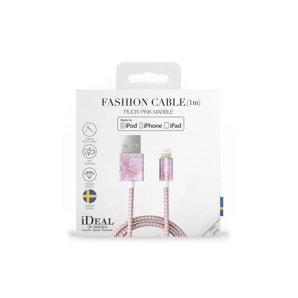 Pilion Pink Marble lightning cable is MFI certified by Apple and fits all Apple’s units with a lighting port. The cable is of the highest quality made in braided nylon and with luxurious golden details.