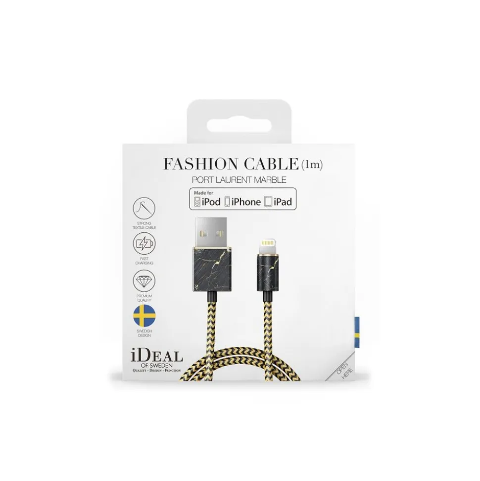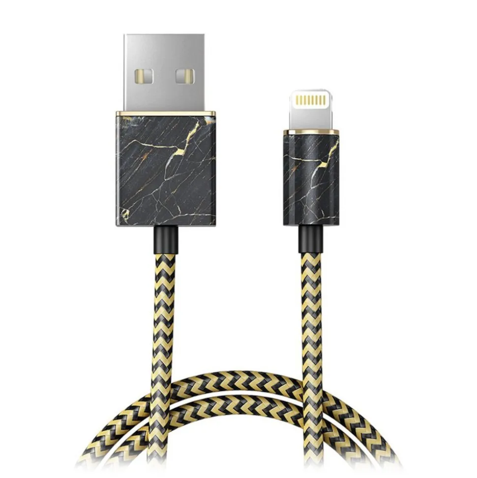 Port Laurent Marble lightning cable is MFI certified by Apple and fits all Apple’s units with a lighting port. The cable is of the highest quality made in braided nylon and with luxurious golden details.