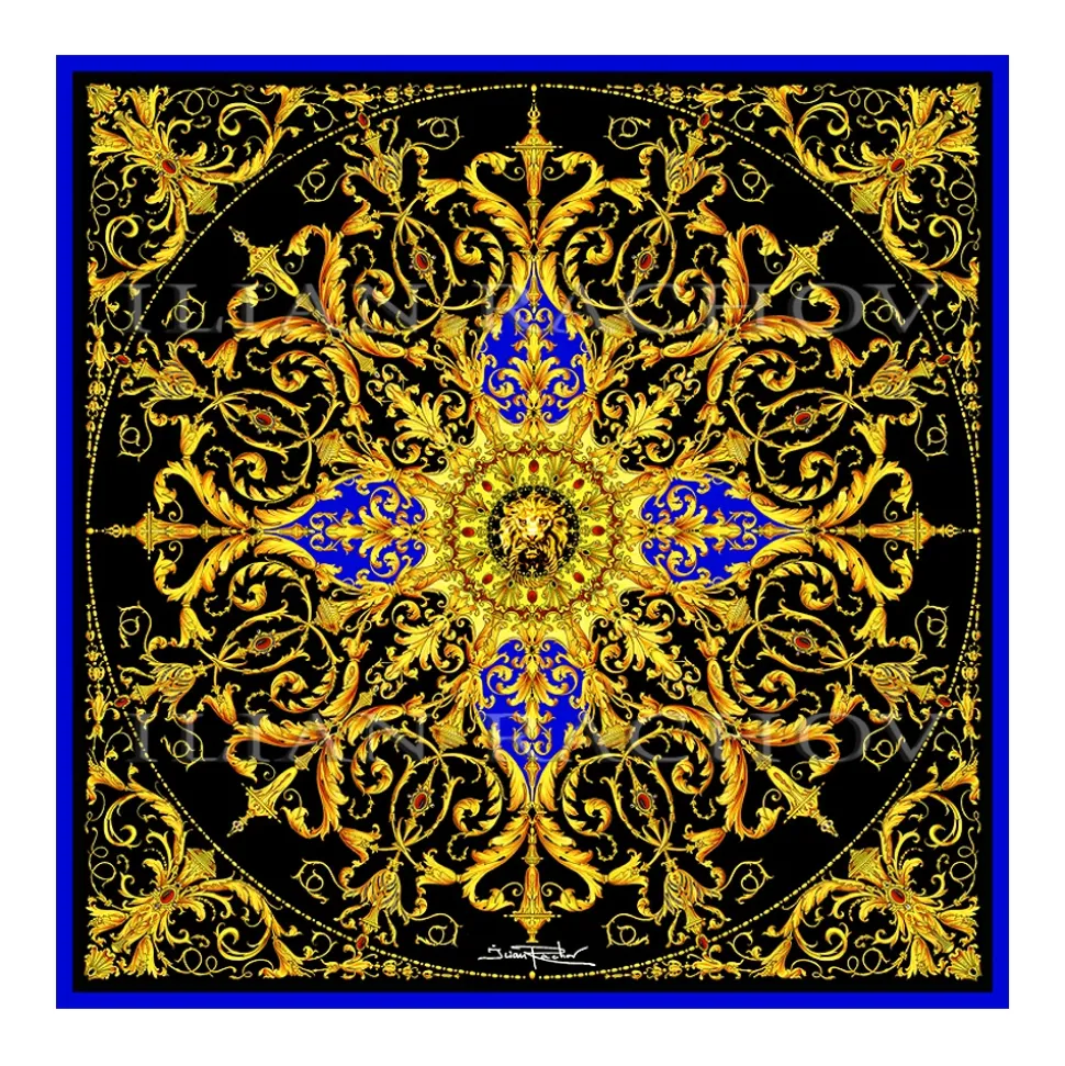 Ilian Rachov –Â Black and Gold Rosone Silk Scarf –Â Baroque –Â Silk Foulard