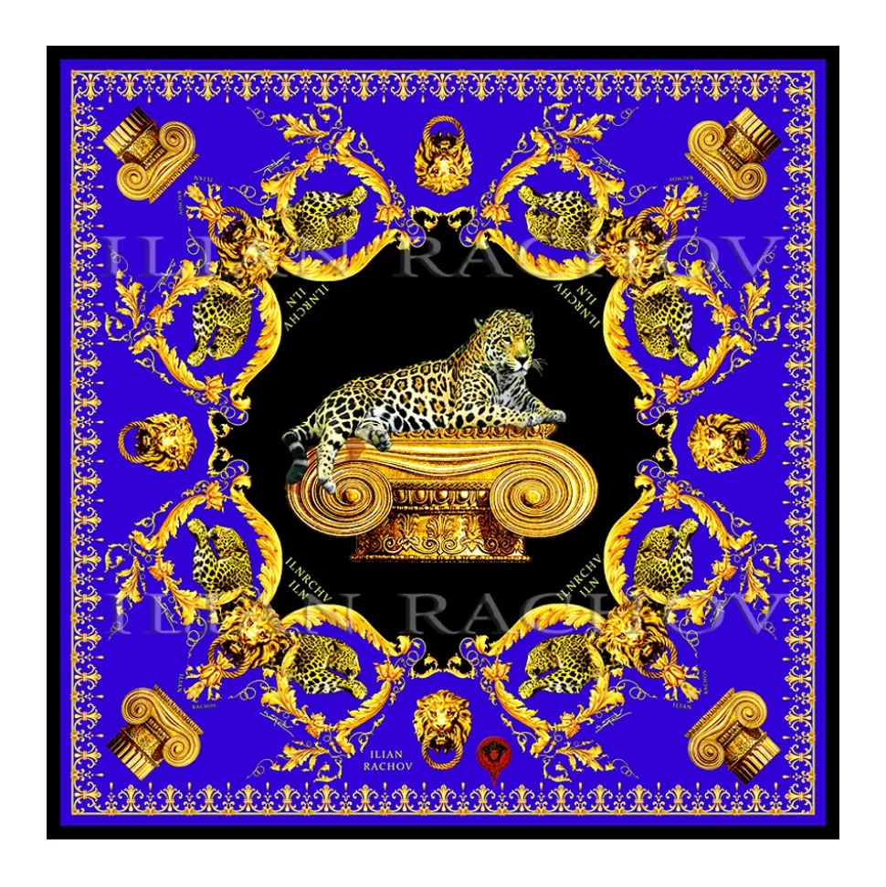 Ilian Rachov –Â Imperial Jaguar Blue Silk Scarf –Â Baroque –Â Silk Foulard